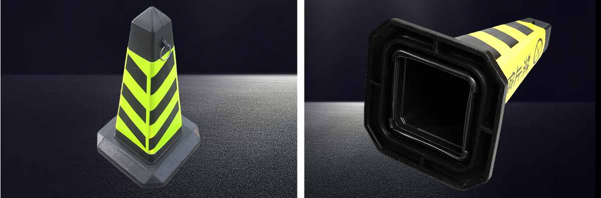 底座為橡膠底座 又名塑料路錐,交通路錐,方尖碑,反光路錐,灌沙錐,方錐,四方錐,PE路錐,反光錐