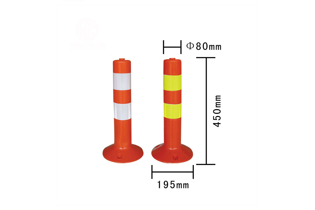 彈性警示柱用特殊的PE、PVC、PU經過的工藝制成,耐碰撞。經外力滾壓后,能快近反彈回來恢復原狀
