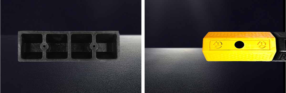 產品特點: 1. 一套兩個,組合使用 2. 由高強度橡膠制成,抗壓性能好,而且坡體有一定柔軟度 3. 安裝穩定,在車輛撞擊時不會滑動 4. 特殊工藝確保顏色持久,不易褪色 5. 安裝簡單,維護方便,穩固牢靠 6. 美觀大方,有效規范停車秩序