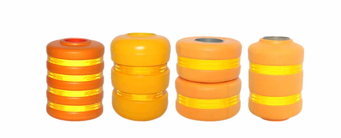 色澤鮮明亮麗,根據需要可噴涂成多種顏色,如黃色,橙色,紅色和藍色等,聚氨酯材料色澤鮮明亮麗,貼上紅白反光膜夜間更醒目。